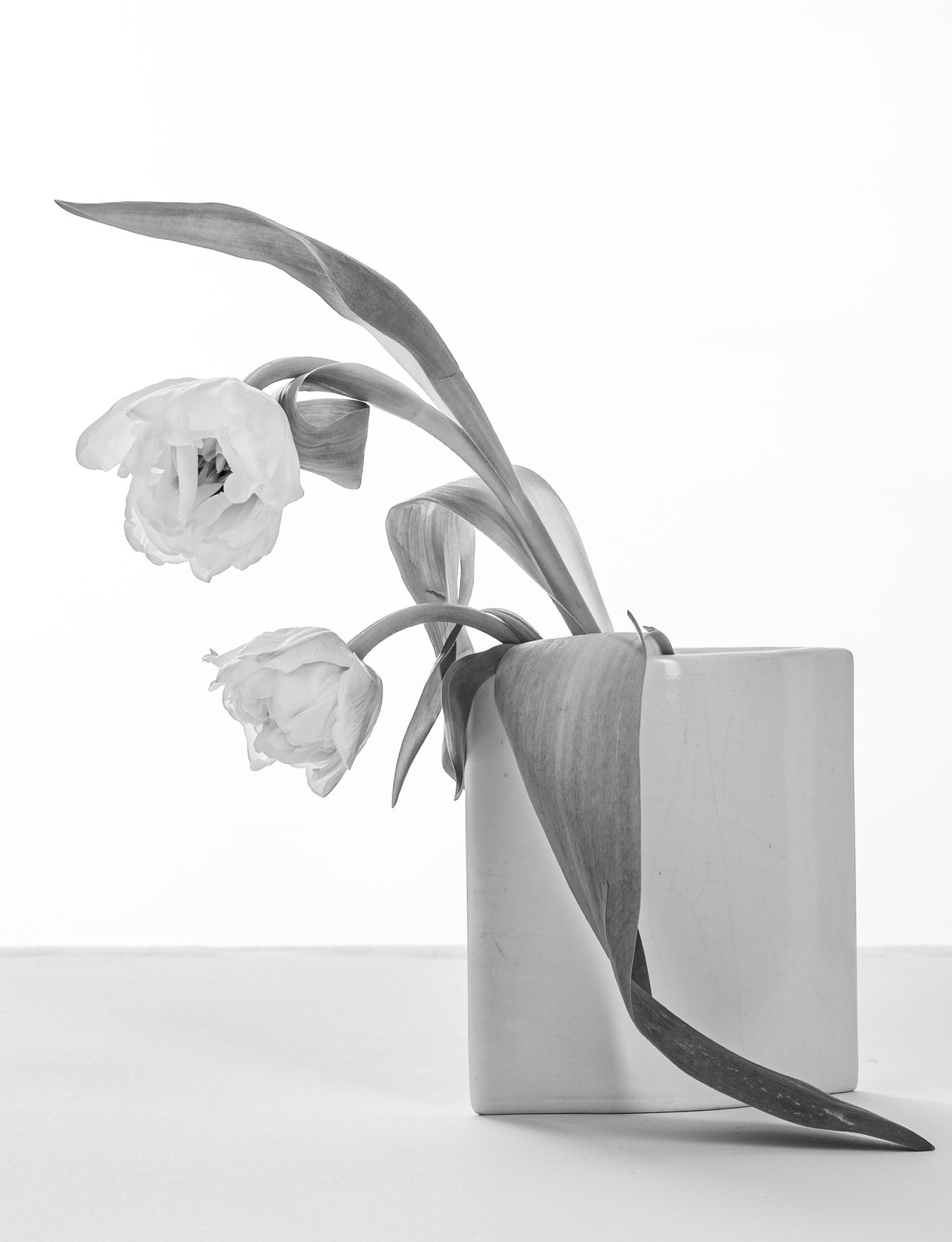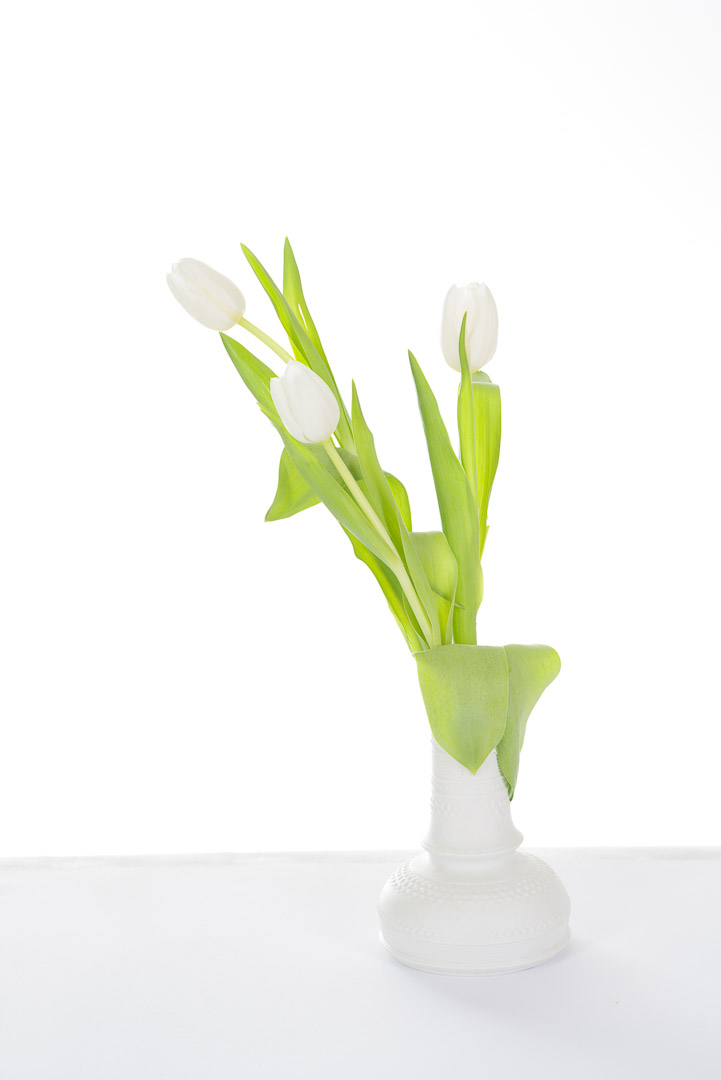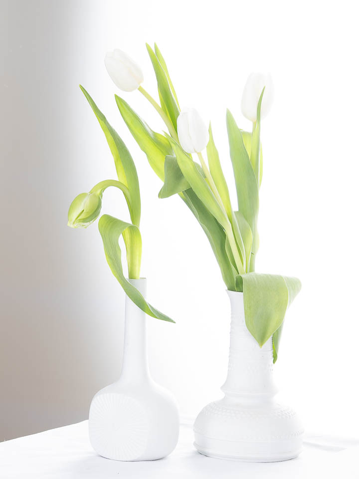 Weiß leuchtende Tulpen, elegant in weißen Vasen arrangiert, standen im Mittelpunkt des Geschehens. Die Teilnehmer des Abends setzten ihr Können und ihre Leidenschaft ein, um die aufgebauten Sets in bestmöglichem Licht festzuhalten. Jeder fand seine eigene Herangehensweise, das Zusammenspiel von Licht und leichten Schatten sowie die jeweils individuelle Anordnung der Requisten ins Bild zu setzen.