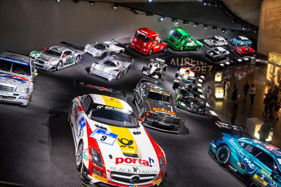 Bemerkenswert die Innen- und Außenarchitektur des Museums, passend zu den technischen und kreativen Spitzenleistungen der Autos im Laufe der Jahrzehnte, die bei der Erfindung der Automobile starten und wie elitäre Kutschen anmuten und so herzerfreuend wirken. Durch das Arrangement von geschichtlichem Hintergrund und parallel laufendem Fahrzeugdesign wird sehr deutlich, wie der Fahrzeugbau Zeitauffassung und Zeitgefühl spiegelt, jedoch nicht minder die zeitentsprechend sich wandelnde Traumwelt der Menschen wiedergibt. Es ist schon ein interessantes Museumsgefühl, in bequemen Serpentinen, die ein bisschen wie Rennbahnen anmuten und in einem etwas labyrinthischen System sich präsentieren, abwärts zu wandern, die Modelle in ihrer Vielfalt zu bewundern und letztlich auch festzustellen, dass im Genre der Eleganz kein jahrhundertaltes Modell den aktuellen Schöpfungen nachsteht. Dies alles in unerwarteten Sichtwinkeln dargestellt, wie gemacht für Fotofreunde und genießerische Augenmenschen.