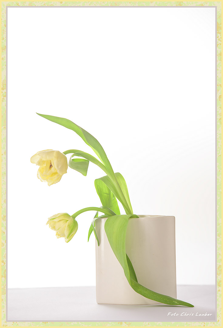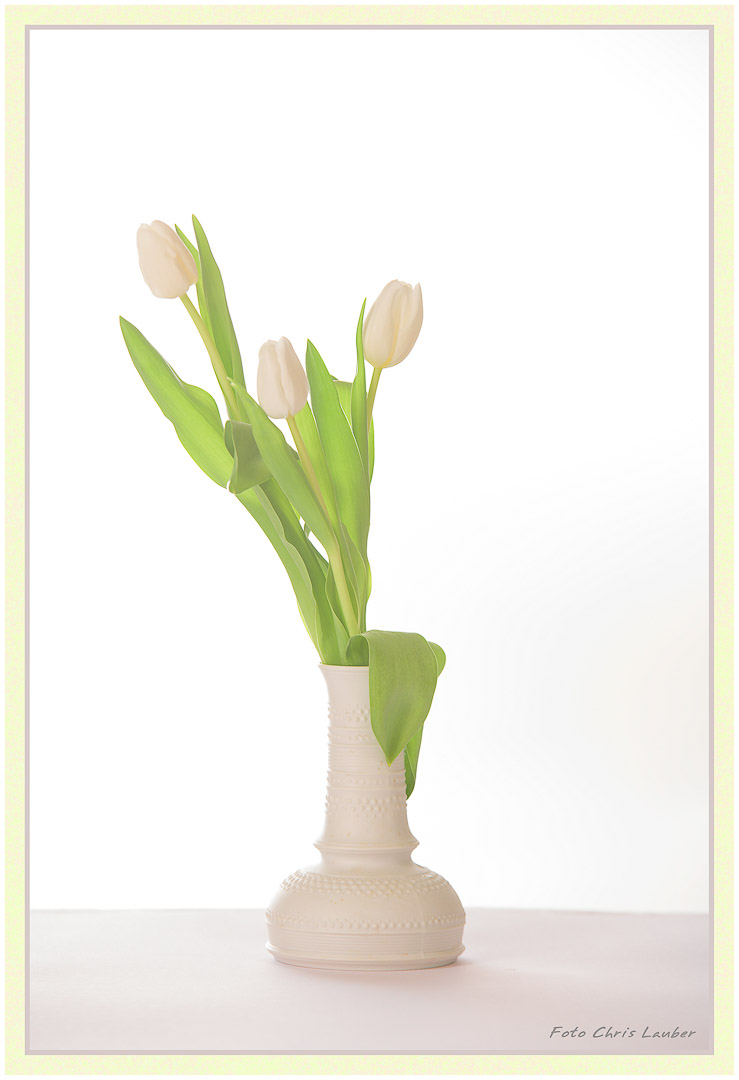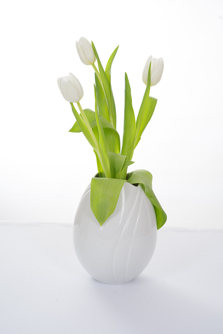 Weiß leuchtende Tulpen, elegant in weißen Vasen arrangiert, standen im Mittelpunkt des Geschehens. Die Teilnehmer des Abends setzten ihr Können und ihre Leidenschaft ein, um die aufgebauten Sets in bestmöglichem Licht festzuhalten. Jeder fand seine eigene Herangehensweise, das Zusammenspiel von Licht und leichten Schatten sowie die jeweils individuelle Anordnung der Requisten ins Bild zu setzen.