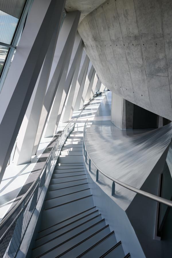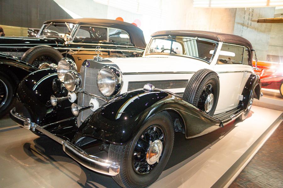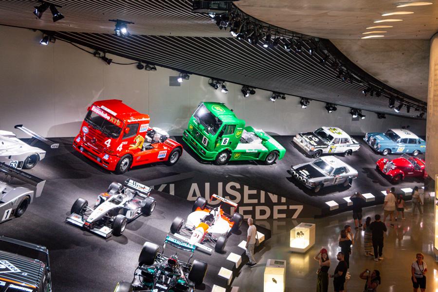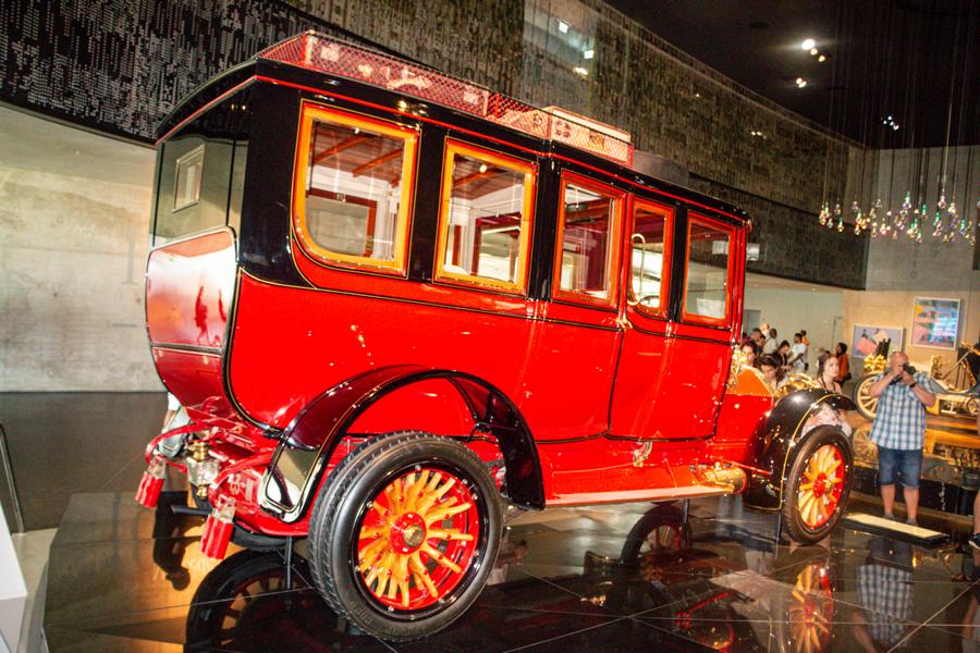 Bemerkenswert die Innen- und Außenarchitektur des Museums, passend zu den technischen und kreativen Spitzenleistungen der Autos im Laufe der Jahrzehnte, die bei der Erfindung der Automobile starten und wie elitäre Kutschen anmuten und so herzerfreuend wirken. Durch das Arrangement von geschichtlichem Hintergrund und parallel laufendem Fahrzeugdesign wird sehr deutlich, wie der Fahrzeugbau Zeitauffassung und Zeitgefühl spiegelt, jedoch nicht minder die zeitentsprechend sich wandelnde Traumwelt der Menschen wiedergibt. Es ist schon ein interessantes Museumsgefühl, in bequemen Serpentinen, die ein bisschen wie Rennbahnen anmuten und in einem etwas labyrinthischen System sich präsentieren, abwärts zu wandern, die Modelle in ihrer Vielfalt zu bewundern und letztlich auch festzustellen, dass im Genre der Eleganz kein jahrhundertaltes Modell den aktuellen Schöpfungen nachsteht. Dies alles in unerwarteten Sichtwinkeln dargestellt, wie gemacht für Fotofreunde und genießerische Augenmenschen.