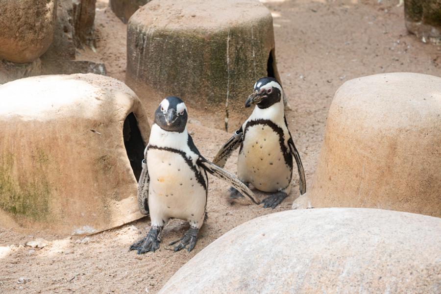 Gleich am Eingang zur Wilhelma im allerersten Terrain, quasi zur Begrüßung, wurden die Besucher von den Pinguinen erwartet, deren elegantes Federkleid wie vornehme Festgardarobe anmutet.